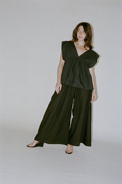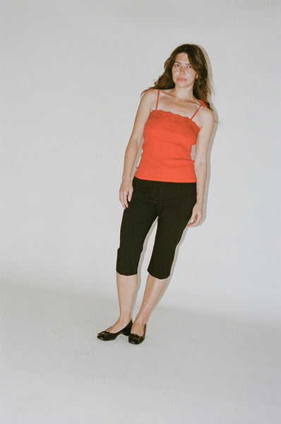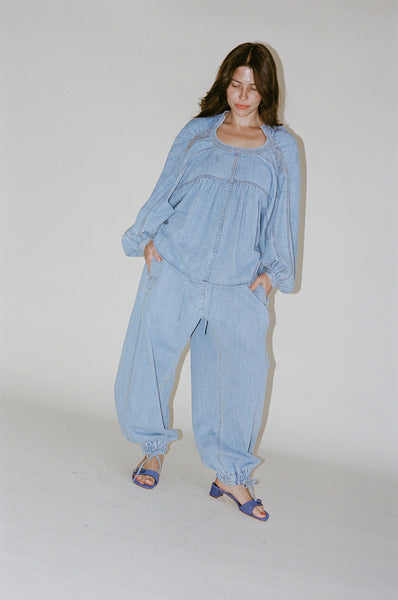 DONNI. Pointelle Simple Crop Pant in Blueberry