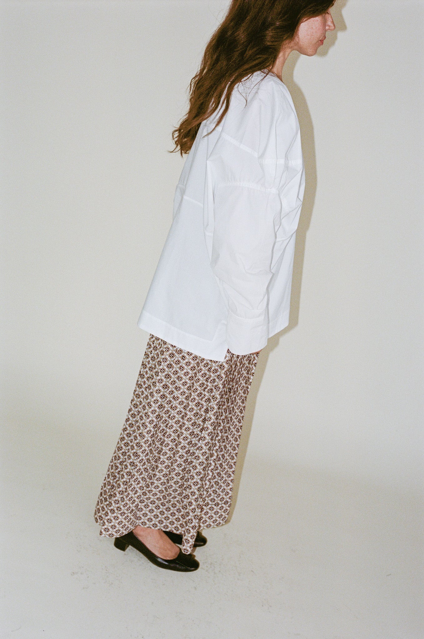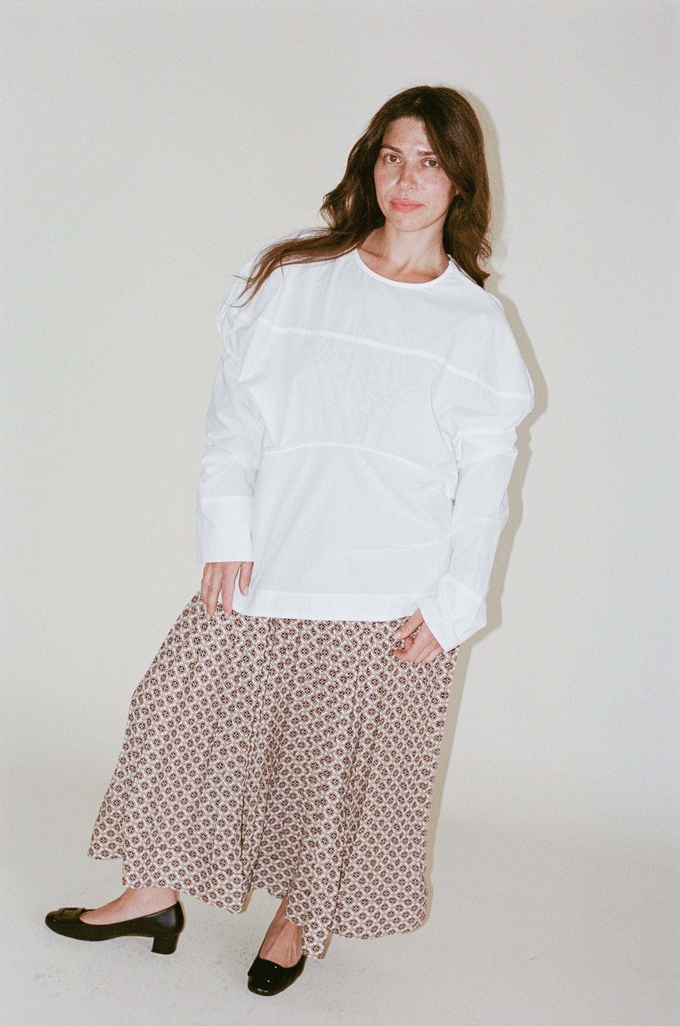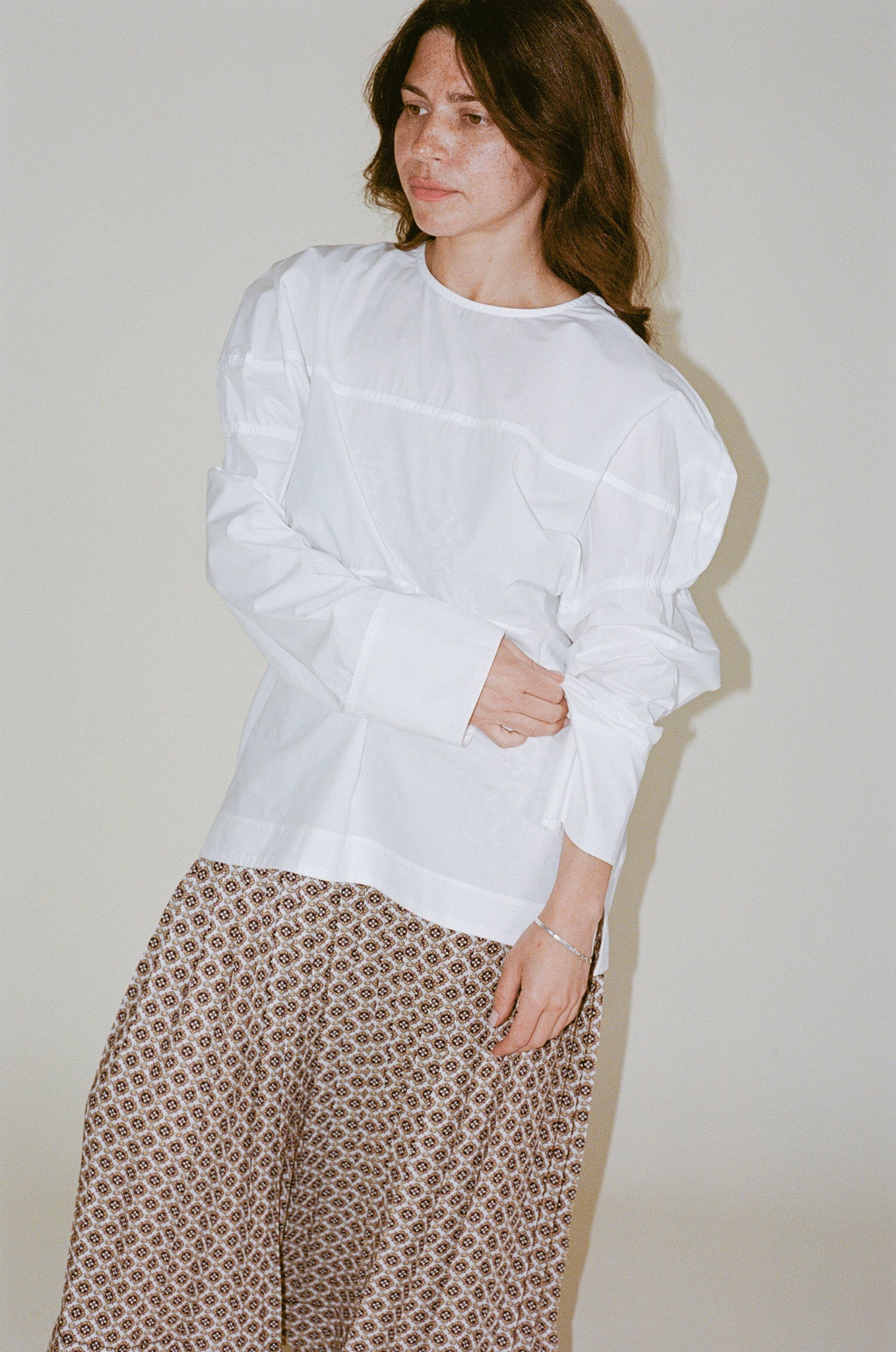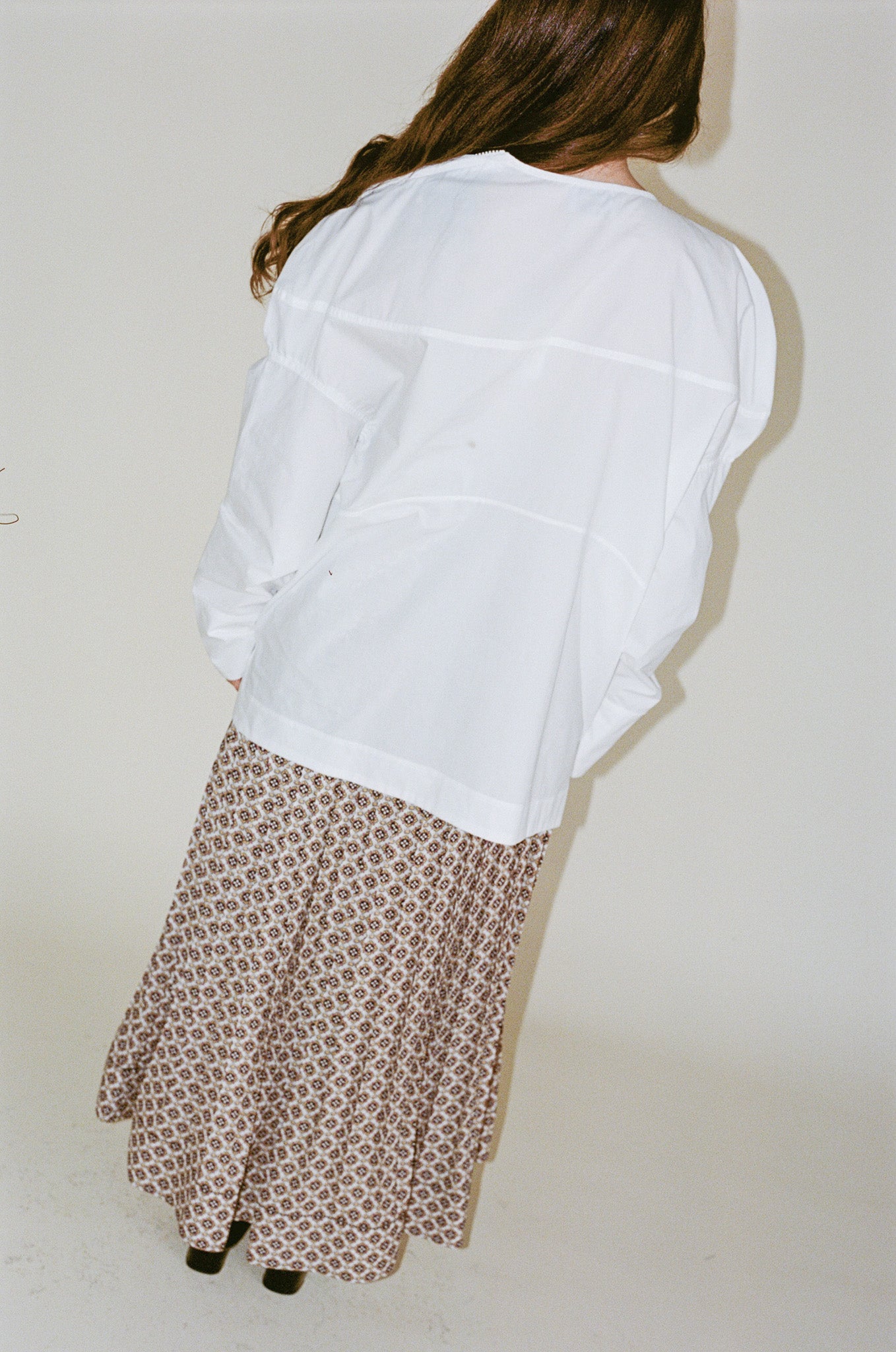 - Oversized long-sleeve top crafted from organic Portuguese cotton, known for its dry and crisp texture. Designed with a crew neckline, dropped shoulders, and seamed detailing throughout for added structure. Features long sleeves with wide cuffs and an exposed zipper closure along one shoulder for versatility - to be worn zipped or unzipped.
