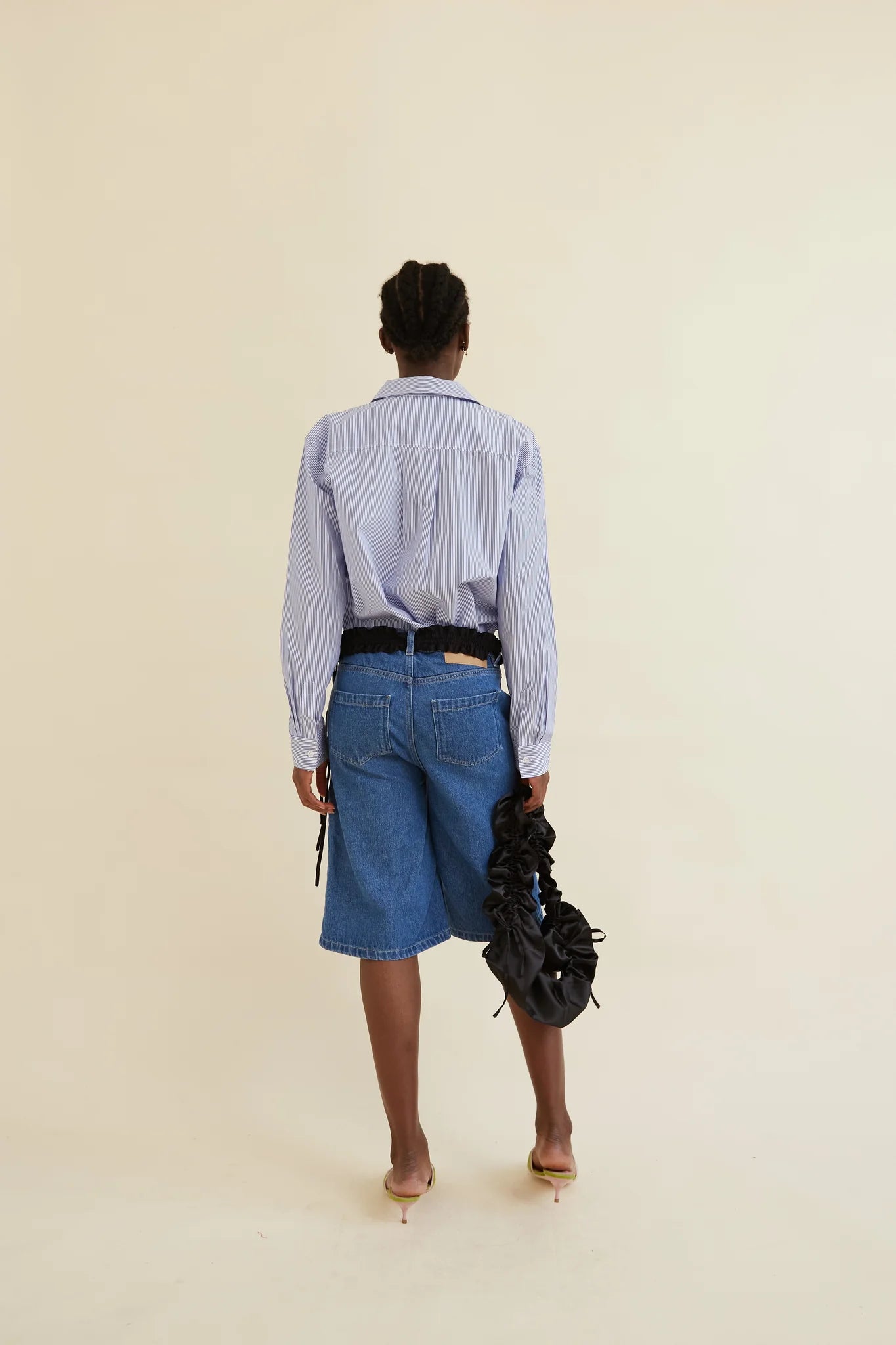 Organic cotton knee-length denim shorts
